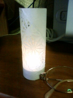 これはそこで展示されてた和紙素材の明かり。キャンドルみたいに見えるけど中にボタン電池が入ってて、でもろうそくみたいにふるふるしてて、手を叩いたり息を吹きかけたりするとついたり消えたり。きれいです。一日目には他を見てるうちに売り切れて、結局次の日に行って買う羽目に。でもこれはいい。何より安い…!(びんぼ)ちょっと遠いし、道は込むしだったけど、車出して遠出した甲斐があったなあ。