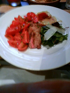 前日はフカさんとトマトレストラン。上写真はメインの肉料理…の筈だったんですが。付け合せってレベルじゃねーぞ!なトマト。これは最早トマトの何とか添え。いやでも美味しかったーvデザートも!パウンドケーキにもトマトが入ってるしトマト塩なんつーのもあってホントにトマトトマトトマトでした。買い物も美術館も面白かったです。でも一人カプセルホテルはしんどい…。
